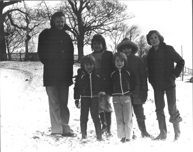 Dad and the kids at the top of Breakback Hill (off Fox Lane, Bromsgrove). Tim, Guy, David, Sally, Mark.