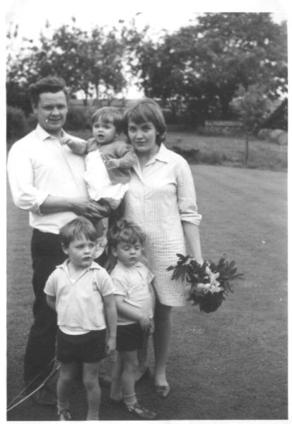 The first half of the family (about 1969). Sally in Dad' arms. Mark and Guy.